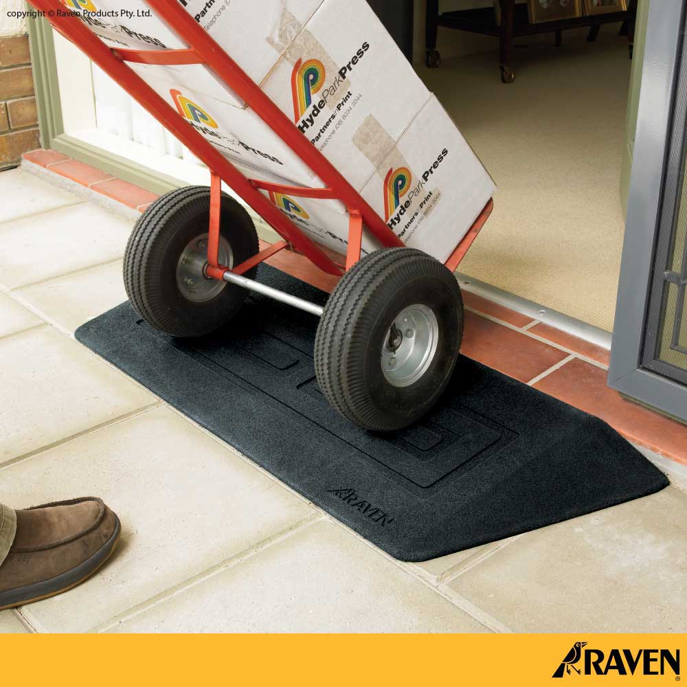 Amazingly affordable, far cheaper than messy cement or custom made metal plates. The Raven threshold ramp simply lies in place or can be permanently fixed with builders adhesive.
