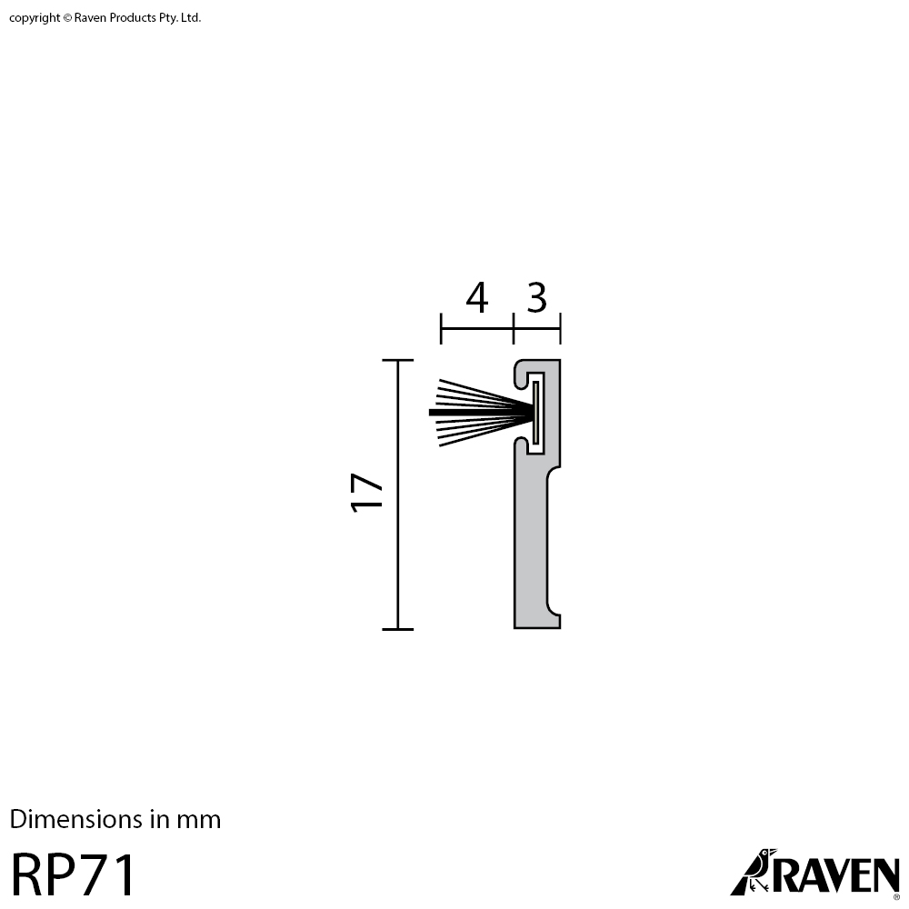 An astragal seal designed for plain or rebated meeting stiles of timber double doors where a centre latch bolt may be required or, where both doors are active. The unique quiet fin of the RP71 is effective in acoustic and weather applications. Two RP71 seals are installed on to the one door stile which allows space for a latch between the two seals.