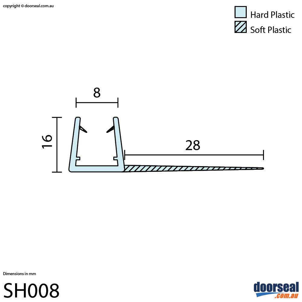 The SH008 helps to minimise water splash and leakage around or beneath the glass panels in a frameless glass shower. This versatile shower screen seal is extremely easy to fit and will suit most user-determined applications. For best results, the seal can be cut to the desired length using scissors or a sharp blade on the soft PVC fin and complete the cut using a fine toothed hacksaw through the rigid plastic strip.